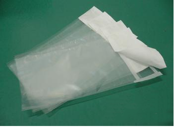 组成:常用一面为复合膜PE/PP(适合环氧乙烷灭菌) 或 PE/PA (适合于环氧乙烷与辐照灭菌) 和另一面为涂层的或不涂层医疗级透析纸也可使用特卫强。常适用于体积较小,结构简单并具有一定厚度的产品。材料:PP/PE,PA/PE,PP/PA/PE,PA等。